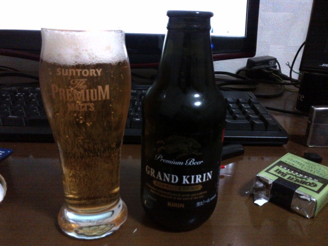 7-11で買った酒3連発の〆、その名もグランド・キリン。 原材料:麦、ホップ 度数:6% 爽やかに後を引く苦味、そして薫り高い風味。 昨日飲んでみたザ・エクストラとは異なる、どちらかと言えばプレミアムモルツに近い味付けだ。 どっしりとした安定感があり、自信と貫禄が感じられる。 国産のビールもいよいよ面子が出揃ってきたといったところか。 それでいてこのグランド・キリンが他との差別化を図っているのが、パッケージである。 ネックの太い、黒褐色の小瓶だ。王冠でもスクリューキャップでもない、引っ張って開けるタイプのキャップ(咄嗟に名前が出てこなかった)である。 手軽でいて、安易ではない。風格を持たせながらも、取っ付き易さを忘れない。 要はバランスということなのだろう。私としては、王冠つきで一向に構わなかったのだが。 いずれにせよ、敢えて瓶入り一本道の戦略というのは、非常に興味深いものだ。 或いはそれ故に、飲み終えた後の空き瓶がチャチなプラスティックのように軽い、ということに些か残念な気分にもなった。 これはもう冗談抜きで、華奢なコロナ・エキストラの空き瓶よりかも余程軽く感じる。 ちょっとそこらの草花を摘んできて、一輪挿しにするのにはうってつけだろう。 ボディは強いが、寧ろその存在に茶目っ気すら感じられる。 ポテンシャルは計り知れないが、どこか素直じゃないところのある食えない奴。 一先ずはまあ、そんなところだろうか。 まあそんなこんなで、今回はこの辺でさいなら。 |