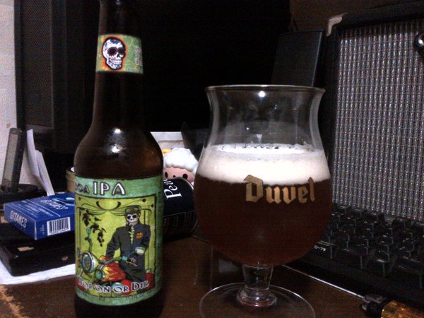 強烈な個性を放つクラフトビールがあることは、前々から知っていた。 その名は「CERVEZA DE LOS MUERTOS」。 「Los Muertos(英語で言えば "The Death" かな)」という直球すぎる名前と、その名に違わぬガイコツをモチーフとしたラベル。因みに王冠にも、オレンジ色で華やかな飾り付けをしたガイコツのモチーフが施されている。 実を言うと、私はこの「Los Muertos」というものを知っていた。 まあ聞きかじり程度に、だけどね。 理由は、ロバート=ロドリゲス監督の「デスペラード」、そしてその続編の「ワンス・アポンナタイム・イン・メキシコ」という映画だ。 特に「ワンス~」は、この「死者の日」を迎えたメキシコの町を舞台としているため、どういう催しなのかというのがおおよそ察しが付く。 華やかに飾りつけたガイコツ(=死者)のモチーフは、凡そ日本人では及びもつかないような奇天烈なセンスで、ここにメキシコ人 ”らしさ” が表れている。 日本で言うところの、お盆のような行事らしいんだが、メキシコ人はそれを祭りにしてしまうのだ。メキシコ人が派手好きとは聞くが、この派手さは群を抜いている。 コロナビールのデザインは、どっちかとゆーとシュッと外面を引き締めた、スマートさを感じるハイカラでセンスフルなものだ。 しかし、片やロス・ムエルトスはメキシコらしい、泥臭いユーモアというか、何にせよ明るさに変えてしまう奇抜さを持っている。 いやにローカル色を押し出した物なのだ。 ビールそのものまで泥臭い、と言うわけではない。 IPA……つまりインディアン・ペールエールだ。華やかなホップの香り、そしてまったりと舌にまとわりつくような香味と、強い苦味。 味わいは洗練されていながらも奥深く、高い満足感が得られる。 さて、ここでスペックを記しておこう。 原材料は麦芽とホップのみで、度数が6.8%。 メキシコ製で、輸入商社はリードオフジャパンだ。 値段は1本/394円。このクラスでは可もなく不可もないかな……。 コロナと比べるとやはり割高感を覚えるが、そもそもビールの種類からして違うので、価格を比較することに意味があるとも思えない(笑) カルディコーヒーファームで偶然見つけて衝動買いしたが、いい買い物だった。まさかこれを置いてるとは思わなかったので、正直面食らった。 ショッピングモールの酒コーナーでイネディットが1本だけ残ってて、めぼしいものが無ければそれを買おうかなーとも思ったんだが。 まあ結論を言えば、旨い。ただその一言。 爽やかで華やかなホップの香りと、そこから後を引く苦味。 インディアン・ペールエールは、ラガービール一強の日本では余り馴染みの無いジャンルではあり、そのアクの強さは非常に好みが分かれるだろう。 まあ、好き者に細々と買い支えられてくれたら……と願うばかりだ。 というわけで、今回は「CERVEZA DE LOS MUERTOS IPA」であった。 実はまあ、もう一種類あるんだが……今回はこの辺で。 |